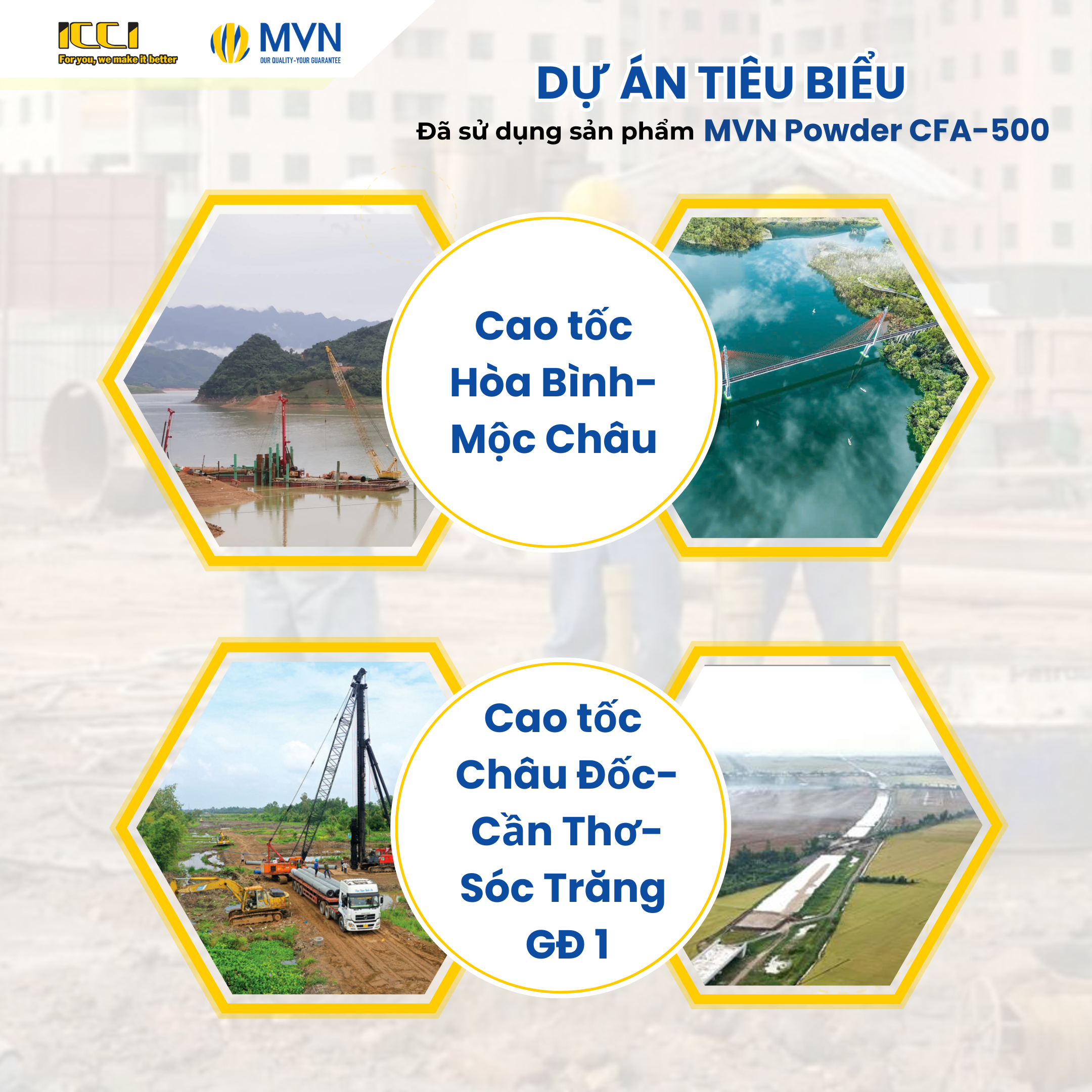 MVN Powder CFA-500 là sản phẩm phụ gia sử dụng trong việc trộn vữa trong điều kiện thi công trực tiếp tại công trường. Việc sử dụng MVN Powder CFA-500 cho hỗn hợp vữa sẽ mang lại các hiệu quả: